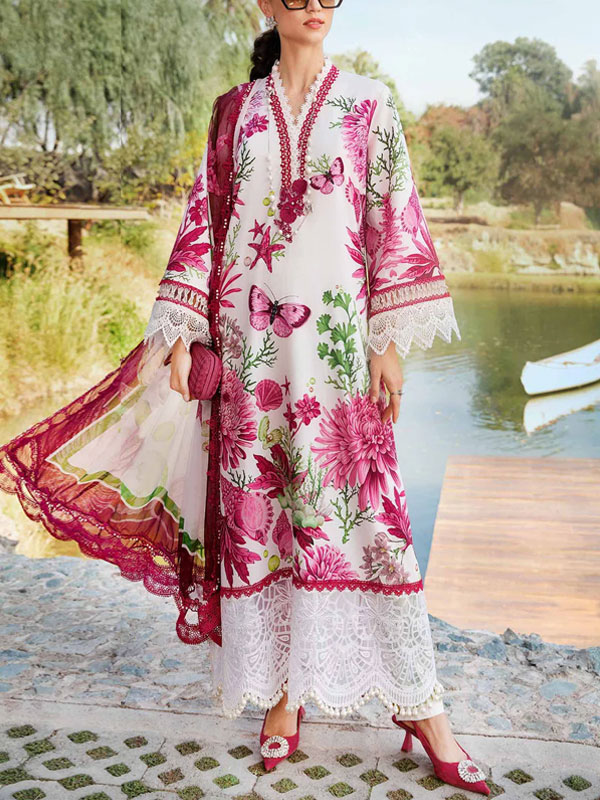 Latest Printed Lawn Embroidered Dress With Printed Chiffon Dupatta (Unstitched) (DRL-2247)